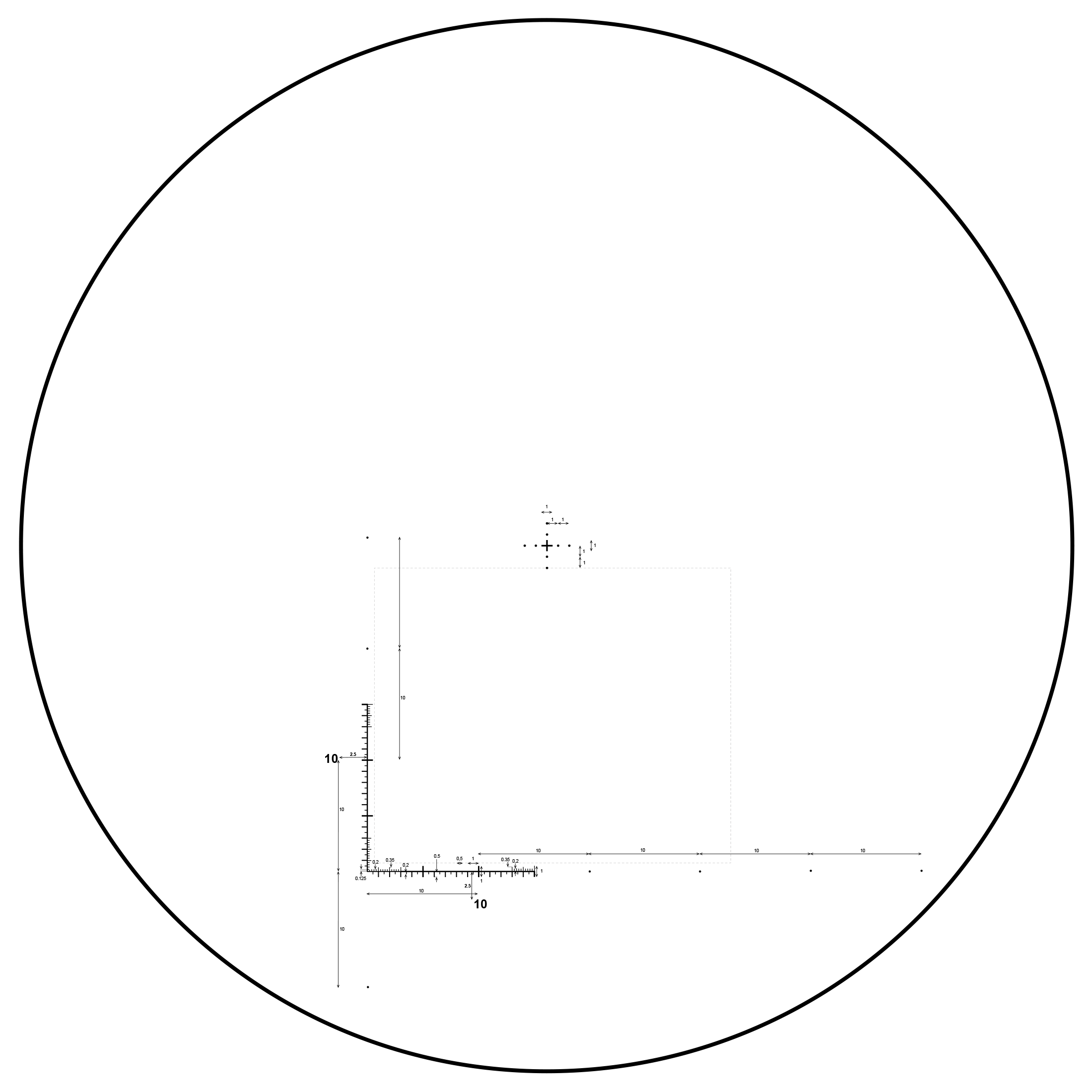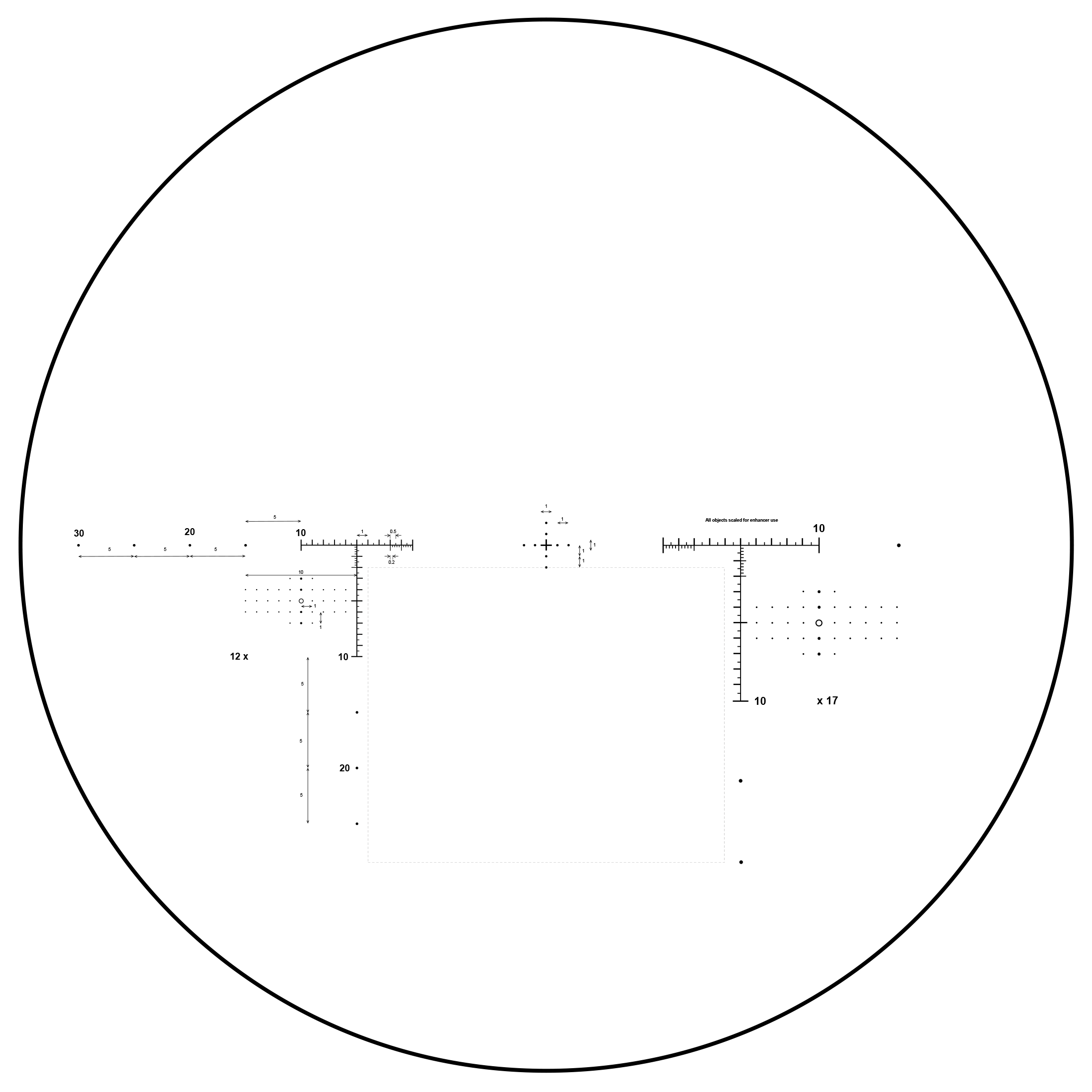 The MSR-DMR version of the Vector X has the Dual Magnification Reticle seen in the above diagram. The left MRAD reticle is calibrated for the base magnification of the binocular, while the right MRAD reticle is calibrated for use with the Range Enhancers.
